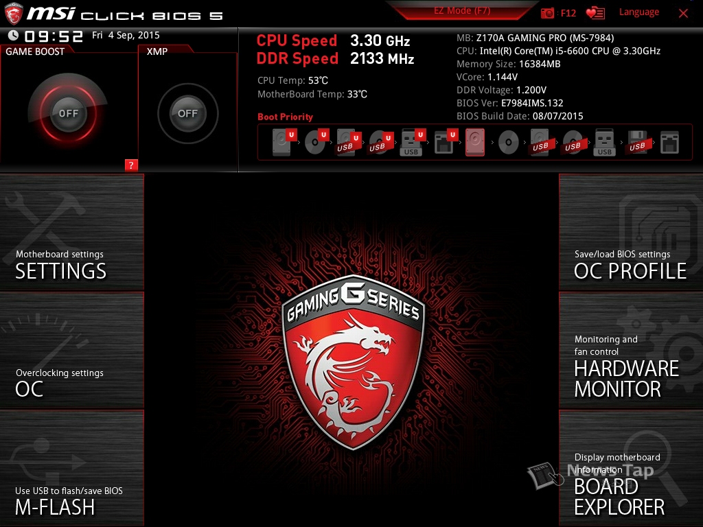 또한 메뉴의 상단 좌측에는 마우스를 한 번 클릭하는 것만으로 CPU의 성능을 올릴 수 있는 원터치 오버클럭 기능인 '게임 부스트(GAME BOOST)' 기능이 마련됐다. 여기에 메모리의 성능을 몇 초만에 쉽게 높일 수 있는 X.M.P (Extreme Memory Profile) 기능까지 제공해 초보자도 어렵지 않게 다룰 수 있다.
