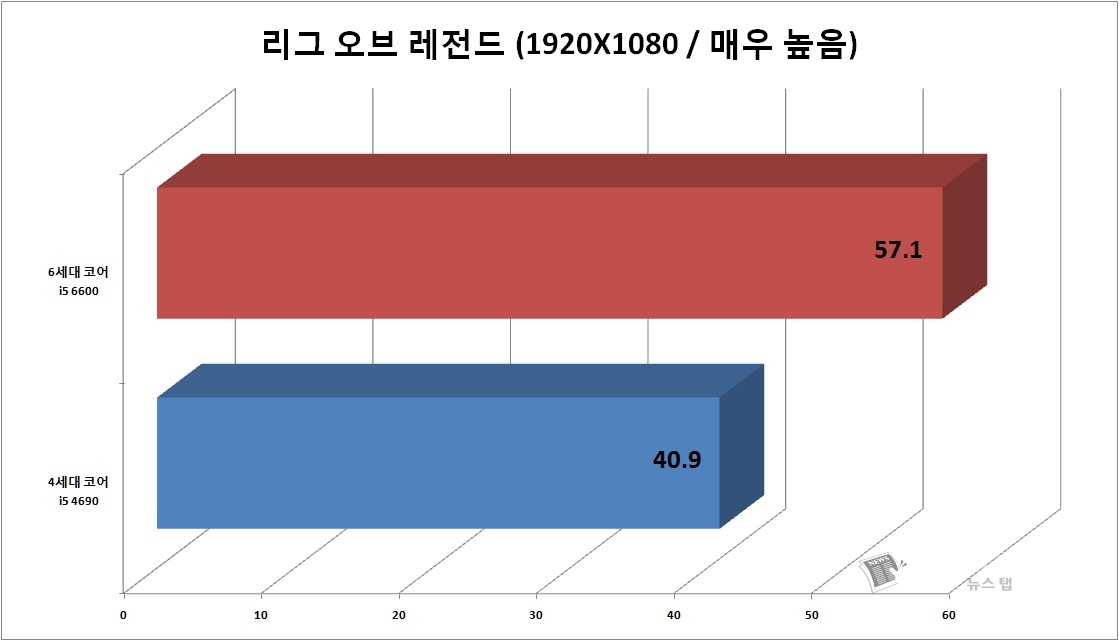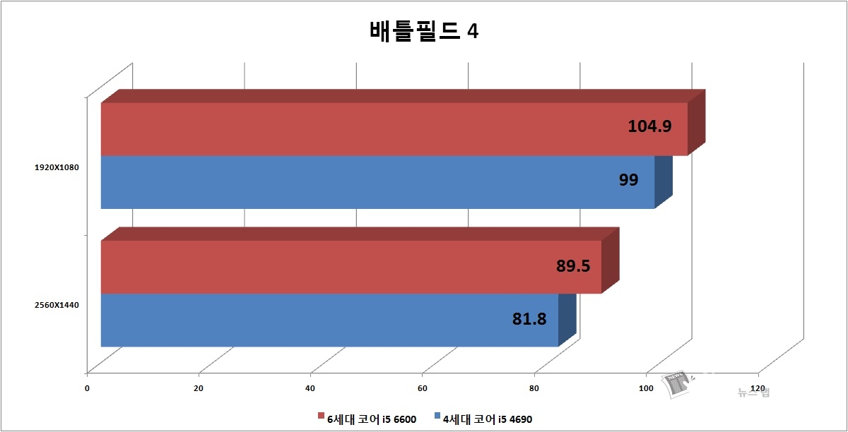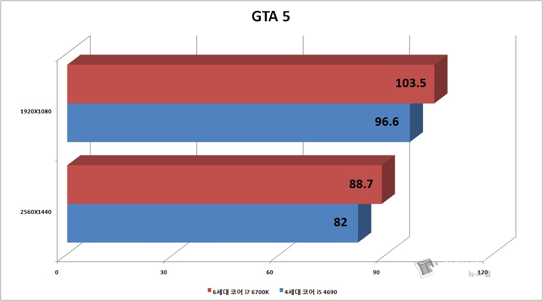 예상대로 아주 큰 차이를 보여주지는 못했으나, 대체적으로 '인텔 6세대 코어 i5 6600'이 5~10% 정도 높은 것으로 측정됐다. 아무래도 그래픽카드에 따른 영향이 큰 고해상도에서 진행된 테스트이다 보니, CPU에 따른 성능 차이가 크지는 않은 것으로 보인다. 다만 측정된 프레임으로 보건데, 고사양의 그래픽카드와 함께 게이밍PC를 꾸미기에 전혀 부족하지 않은 제품인 것은 확실해 보인다.