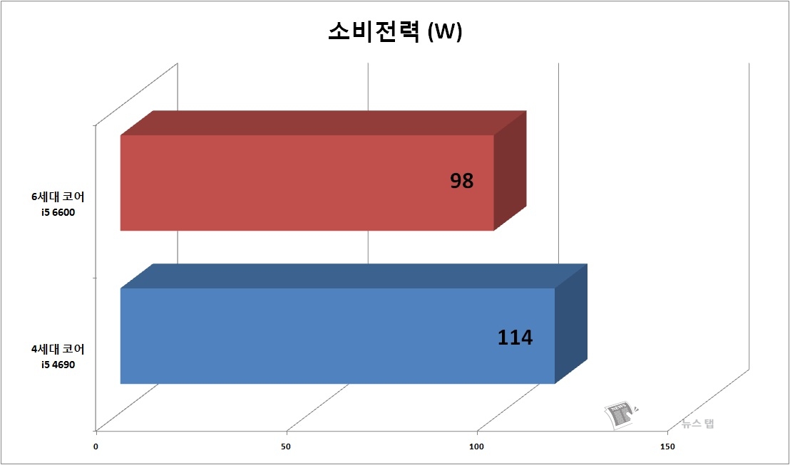 이는 테스트 결과를 통해서도 알 수 있다. 측정된 전력은 98W로 4690에 비해 오히려 낮은 수치였다. 성능 면에서 시종일관 앞선 모습을 보여줬던 것을 감안하면 확실히 전력 효율이 크게 개선됐음을 확인할 수 있다. 제조 공정의 미세화가 갖는 이점을 여실히 보여주고 있는 것이다.
