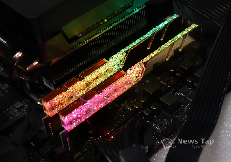 그런 점에서 최근 출시된 'G.SKILL DDR4 16G PC4-28800 CL16 TRIDENT Z ROYAL C 골드'는 고성능 튜닝 메모리의 대중화에 적잖은 기여를 할 것으로 기대되는 제품이다. 혁신이라 불려도 좋을 만큼 화려한 디자인과 RGB LED의 조화는 물론 가격경쟁력을 높여 튜닝 메모리에 대한 진입 장벽을 낮췄기 때문이다.